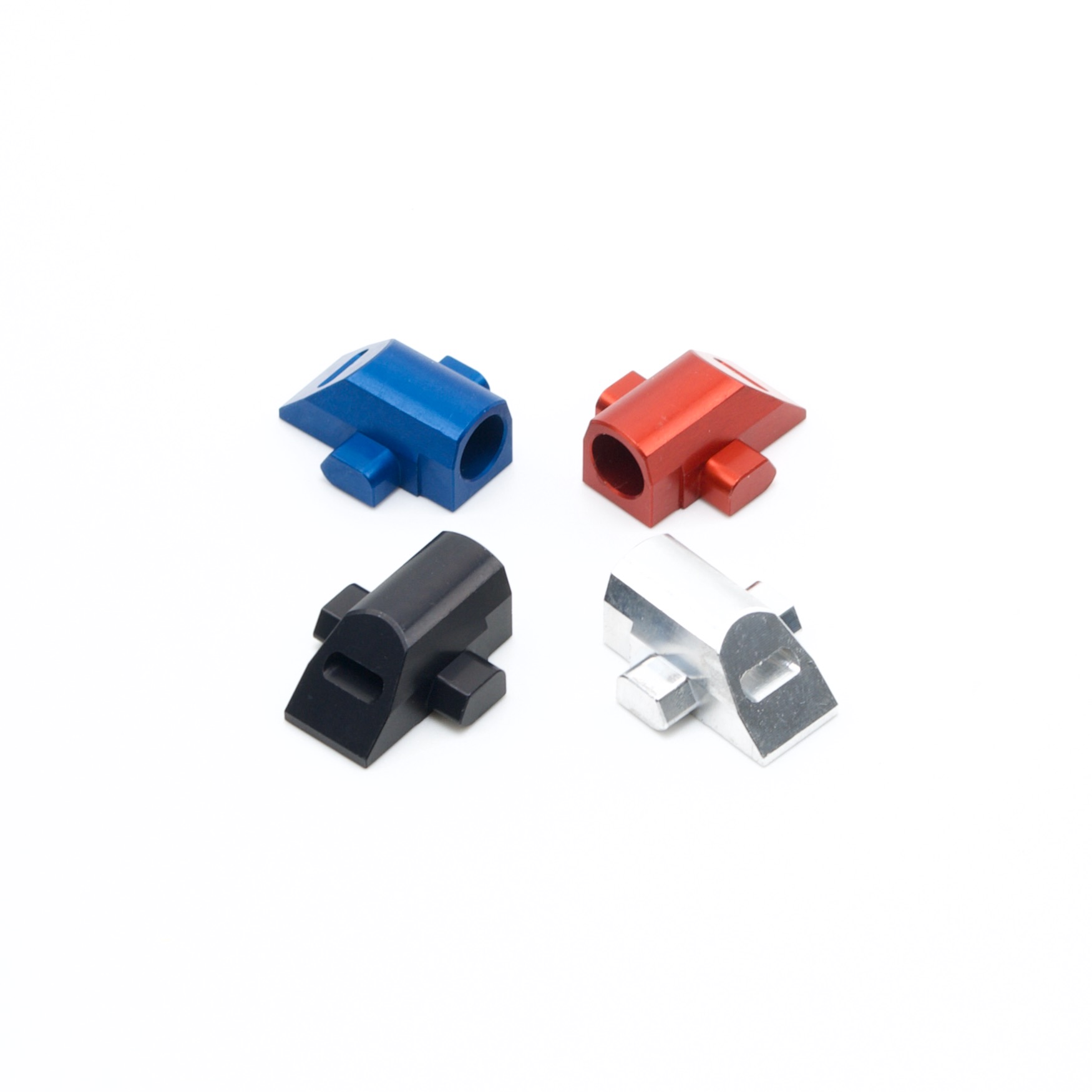 This mainspring seat is aluminum, available either unanodized silver, or with an anodized finish in black, blue, or red. Unlike the original plastic one, it will never break.